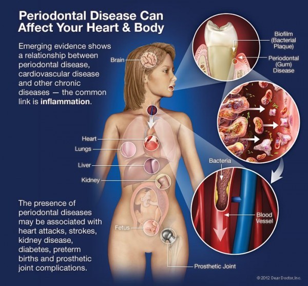 Bacterial infections that grow in your mouth, could easily affect your entire body, and move through it causing lots of Infections and bacterial accumulations in the mouth that can harm your body and move through it causing dangerous medical problems such as lung infection and diabetes and even endanger your pregnancy.