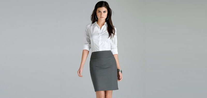 A blouse and skirt shown in the picture give you an elegant look for the interview. You can add waist belt, bow and high toe heels which shows that you are well-dressed. You can choose fabric according to your taste and comfort. Here you can buy the similar blouse and skirts.