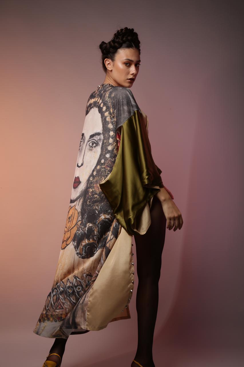 While Suzi Nassif paintings have garnered worldwide recognition her wearable art is bound to earn her even more admirers. Having already created a buzz, the amazing colorful kimonos made by Nassif have the same print as her artwork. The contemporary portrait art on the kimonos are among her most iconic works. Through them she shares not only her art with the world but also her sense of style which is just as unique. The kimonos which are made of high quality silk, chiffon and leather trimming come at reasonable prices as is the case with Suzi Nassif paintings. Best of all, the loose fitting kimonos can be worn by women of all shapes and sizes so no one has to miss out. Examples of wearable art by Suzi Nassif include Her Majesty and his ego wearable art, Dalimortal wearable art, Desert Rose wearable art, Destiny of a butterfly wearable art among others.