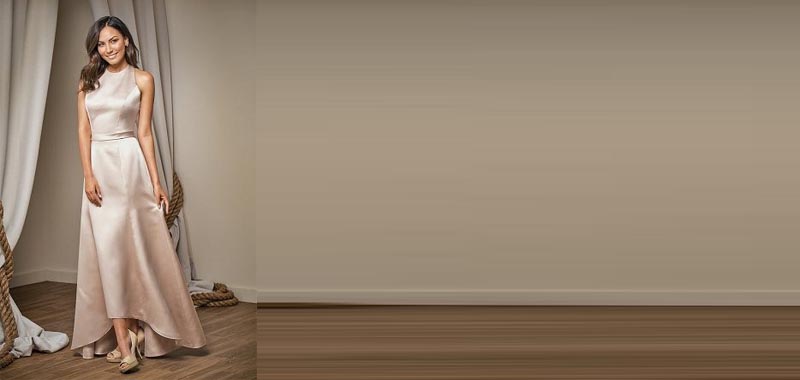 I would recommend you to wear this dress to a wedding ceremony. This lightly based faun colored dress proves to be way more delicate and elegant for you to wear to a wedding. The fabric of the dress is marquis satin with a high-low skirt and with a fine jewel neckline. Pleasing vertical light straps on the back and plain belt that coil round the waist. You can easily avail this dress according to your requirement like you can change the color, fabric and the size of this dress as well. You can easily buy this dress from here.